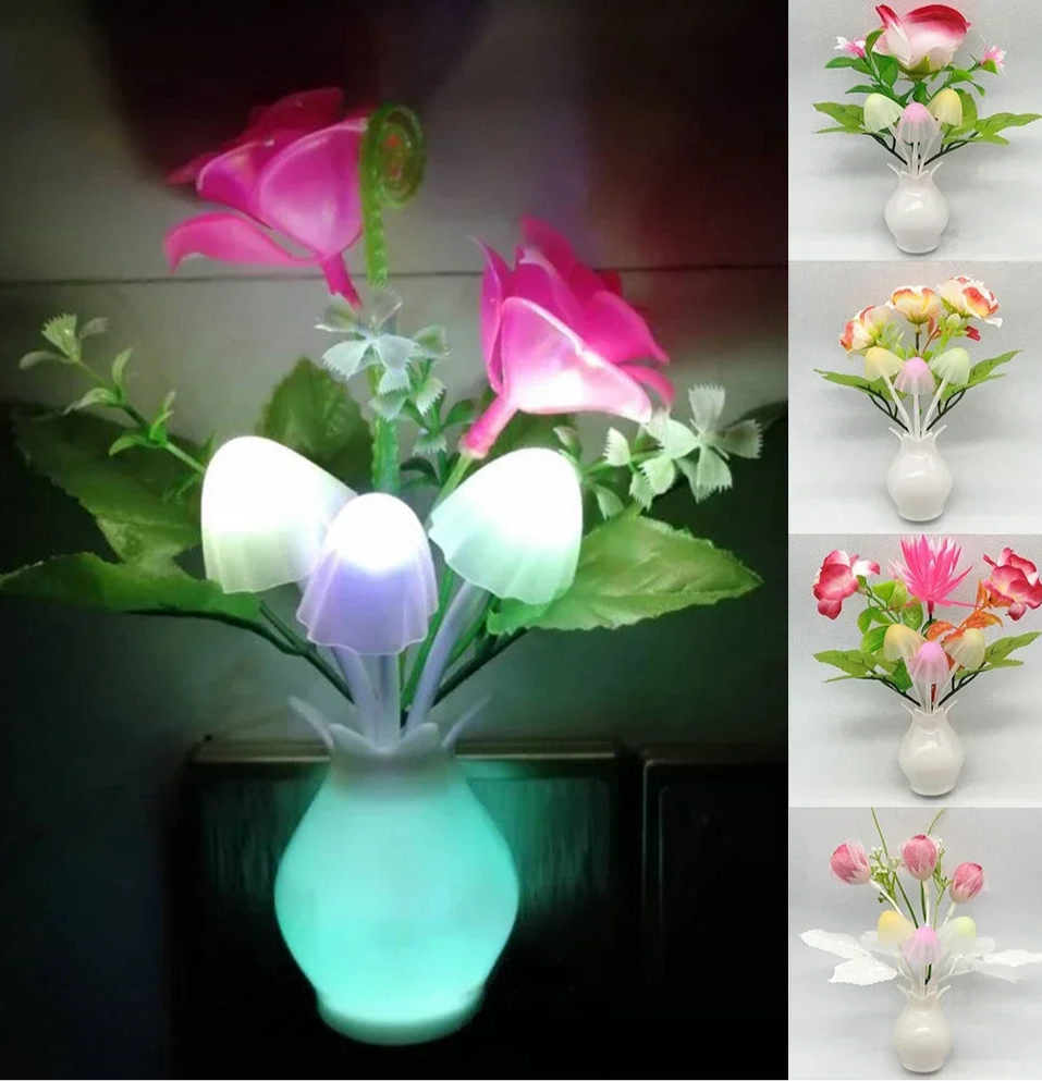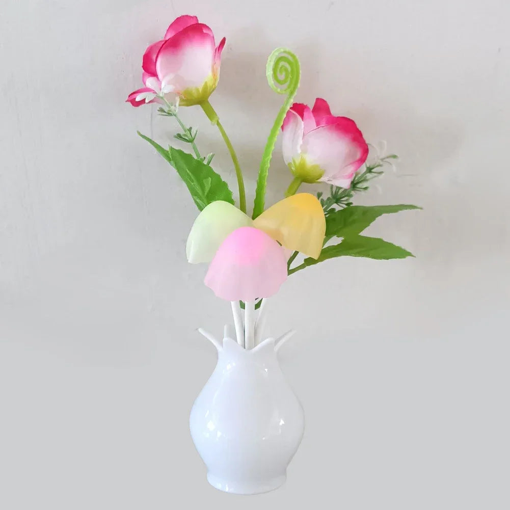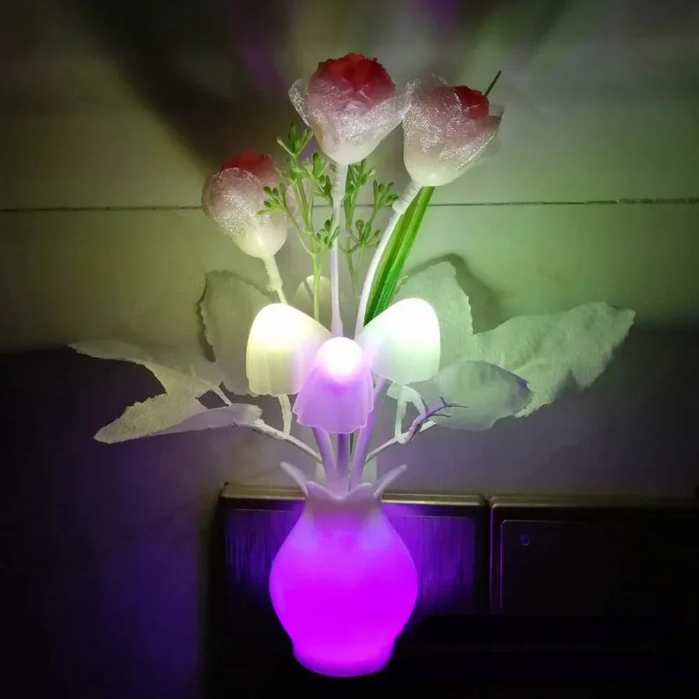 LED Rose Flower Night Light – Auto Sensor Mushroom Lamp for Cozy Home Decor