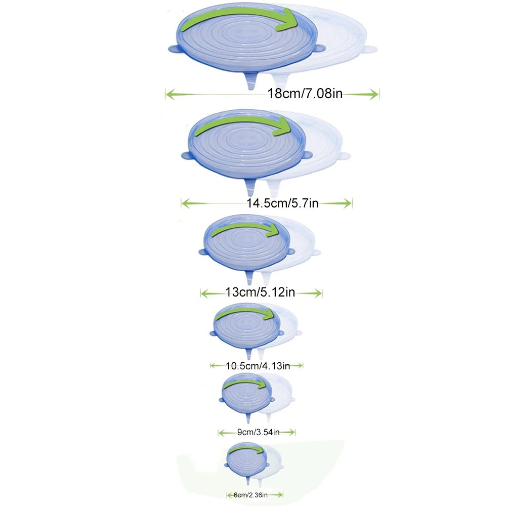 6PCS Reusable Silicone Stretch Lids – Airtight Food Covers for Bowls, Dishes & Containers
