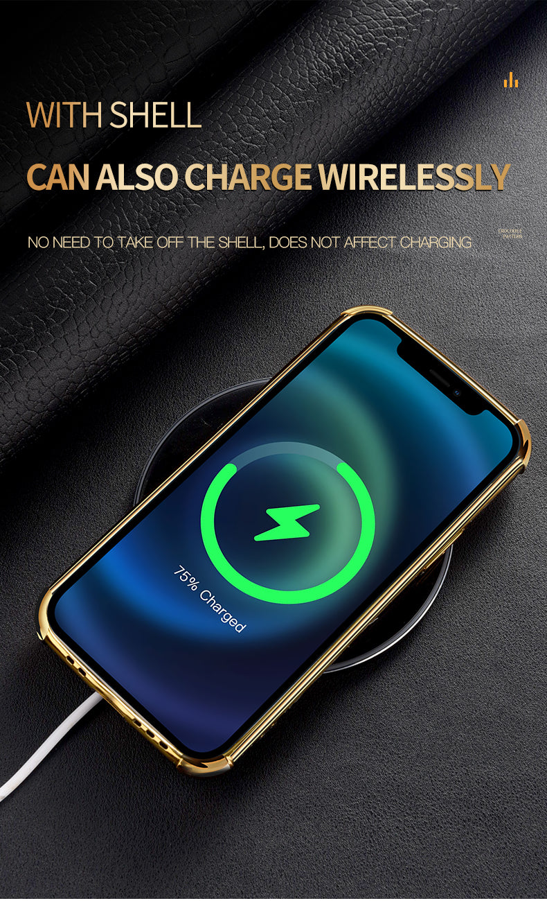 Luxury Crocodile Leather Pattern Phone Case Gold Plating Silicone Cover