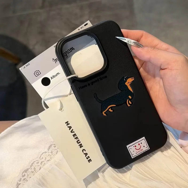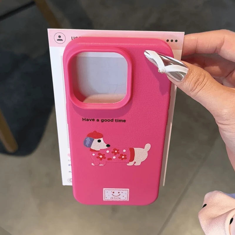 Cute Cartoon Dog Case for iPhone – Soft Litchi Pattern Cover