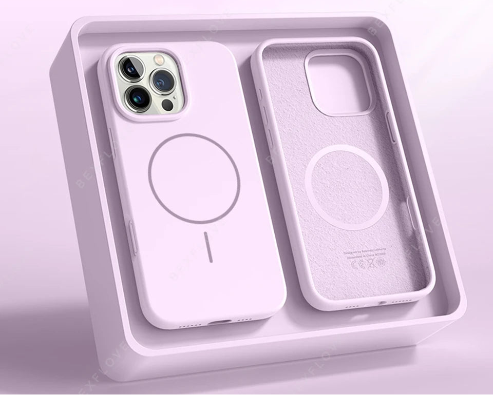 Protect your phone with this soft magnetic silicone case designed for style and function. It includes a matching lanyard for easy carrying and supports magnetic charging. The smooth silicone surface feels comfortable in hand while offering strong protection against drops and scratches.