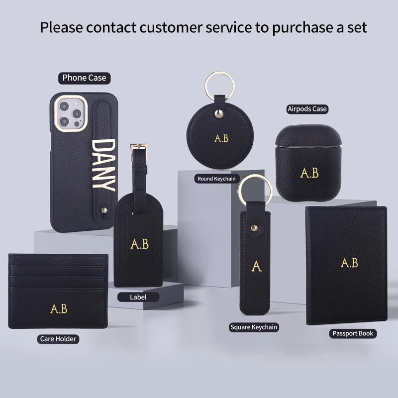 Stylish leather phone case featuring a gold initial letter and matching wrist strap for a personalized, elegant look. Made from premium PU leather, it offers daily protection against scratches and minor drops while adding a refined touch to your phone.